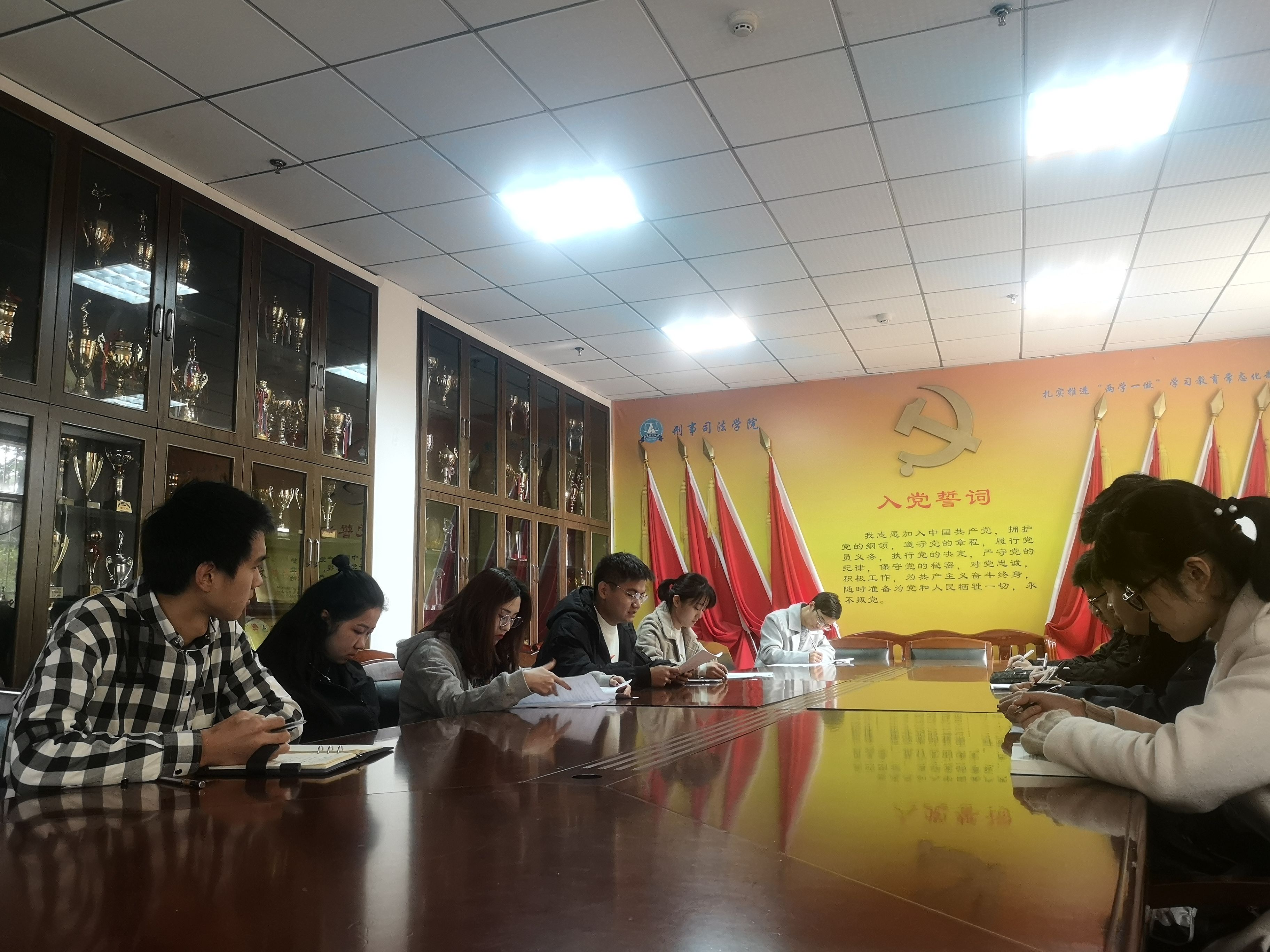 活动最后,全体支部成员在卓张鹏老师的带领下重温入党誓词,庄严宣誓。红旗党支部一定认真做好2019年度工作总结,并且在新学年做出更大的突破,国旗学子也定不负使命,做到全面发展,在各个方面争当“带头人”。