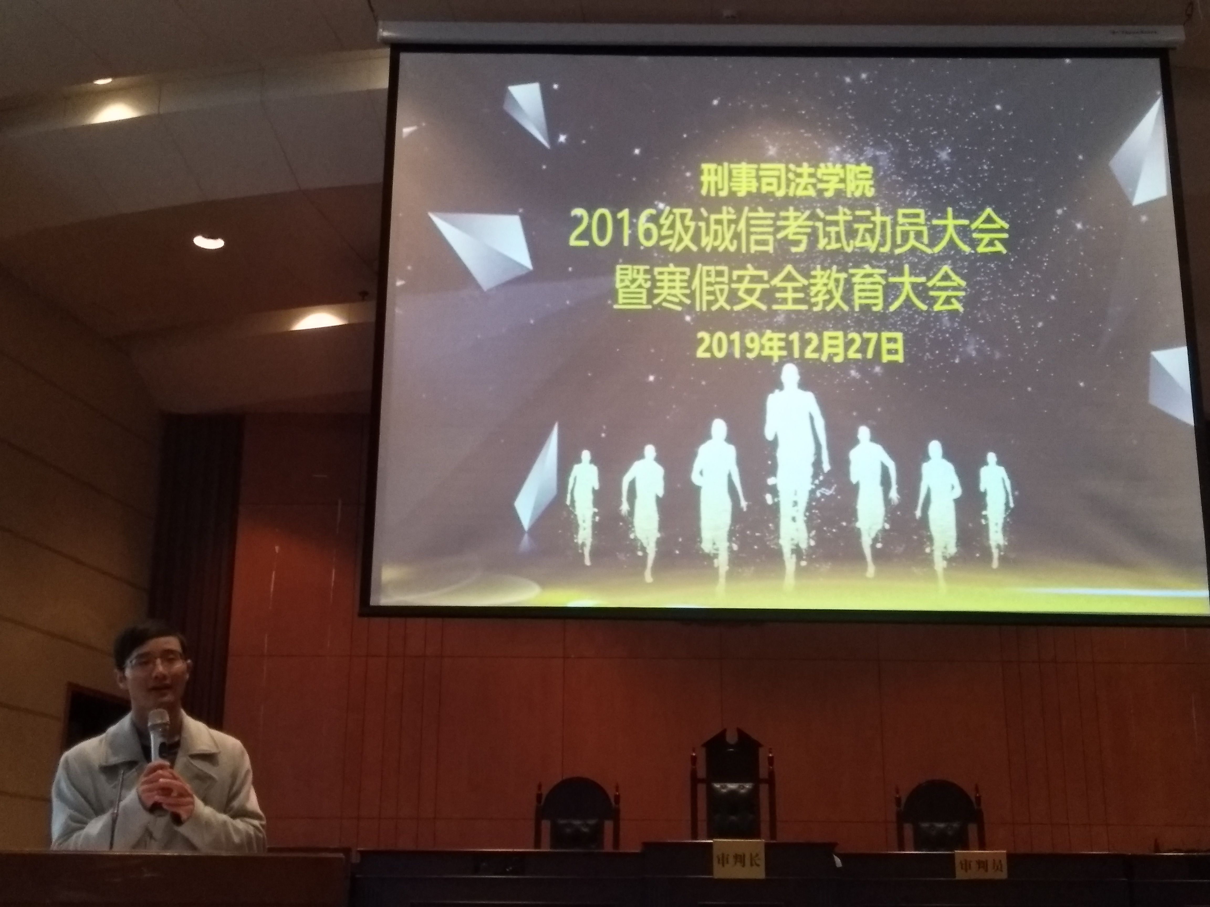 (通讯员:李骜)为总结bat365官网2016级本年度工作情况,做好诚信考试动员、寒假工作安排以及开展主题安全教育,12月27日15:00,bat365官网在文泰楼模拟法庭(一)召开2016级本科生年级大会,2016级全体同学参加了会议,会议由2016级辅导员卓张鹏主持。