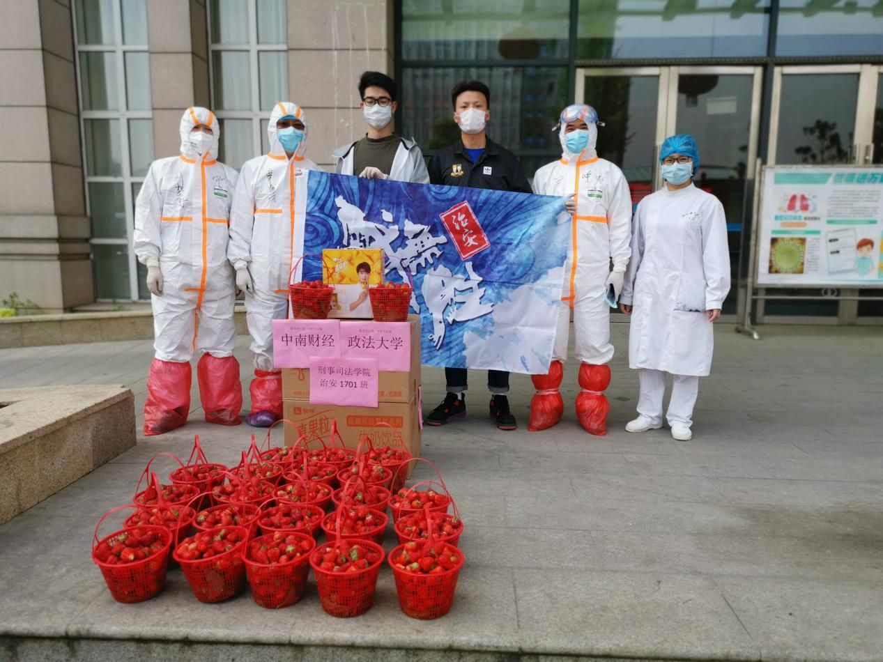 今天上午8时,何一帆和郝龙韬同学带着饮品和当天采摘的180余斤草莓,首先来到蔡甸区人民医院,这里是一直与病毒战斗,直至生命之花凋谢的牺牲烈士夏思思曾经工作过的地方。两位同学向医院的医务工作者们的坚守和奉献表示感谢,并致以崇高的敬意。