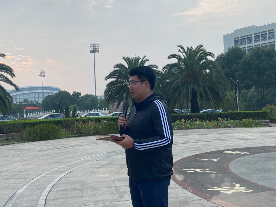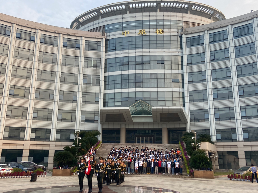新闻网讯(学生记者 徐淇钰)9月28日上午七点,bat365正版唯一官网“国旗故事汇”升国旗仪式教育活动在中原楼下举行。bat365在线平台官网党委副书记万里雪、国旗护卫队带队老师郭青川以及全体2019级学生参加观旗礼。