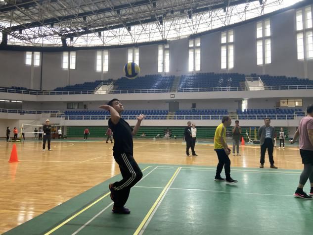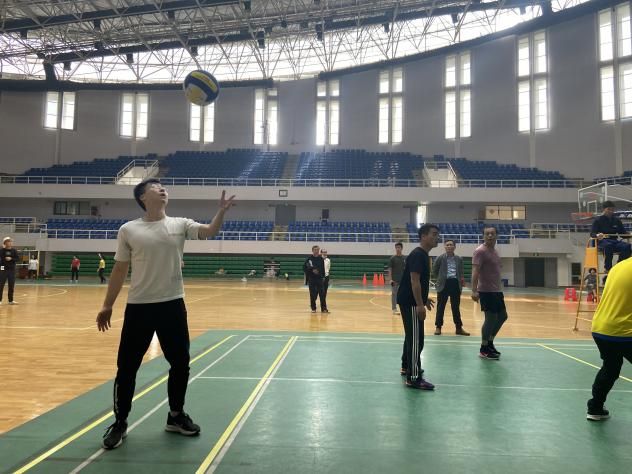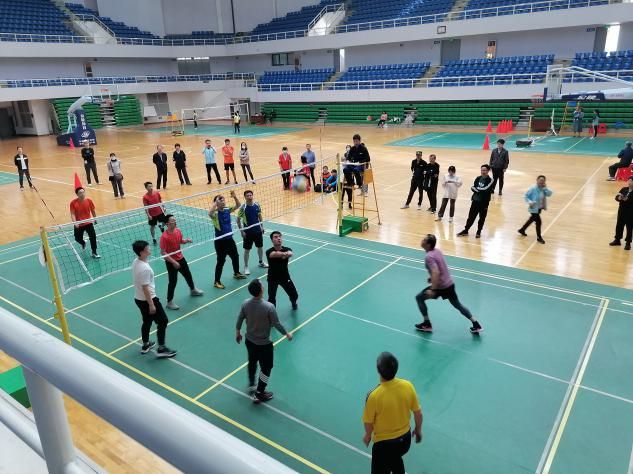 2020年11月7日中午12:30,教职工男子组气排球决赛在艺体中心拉开帷幕。