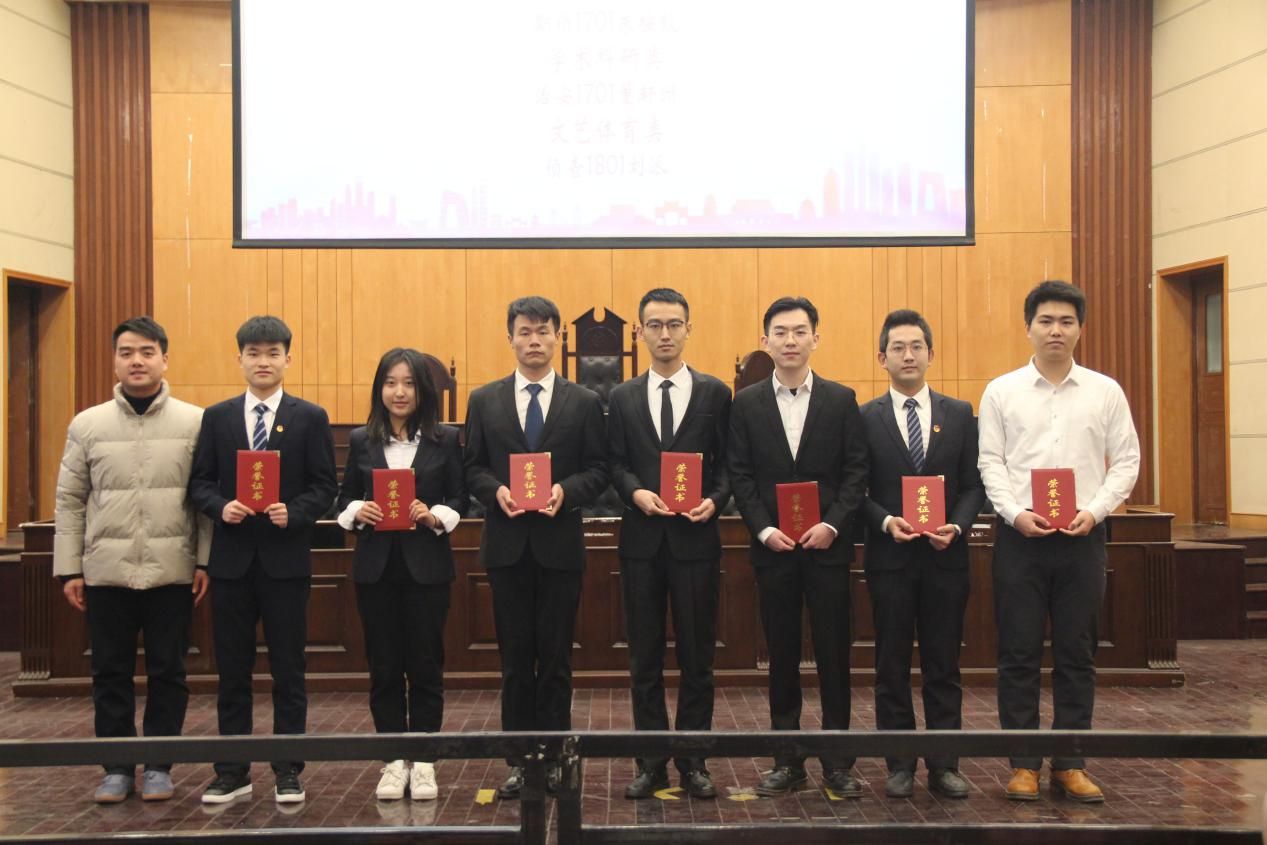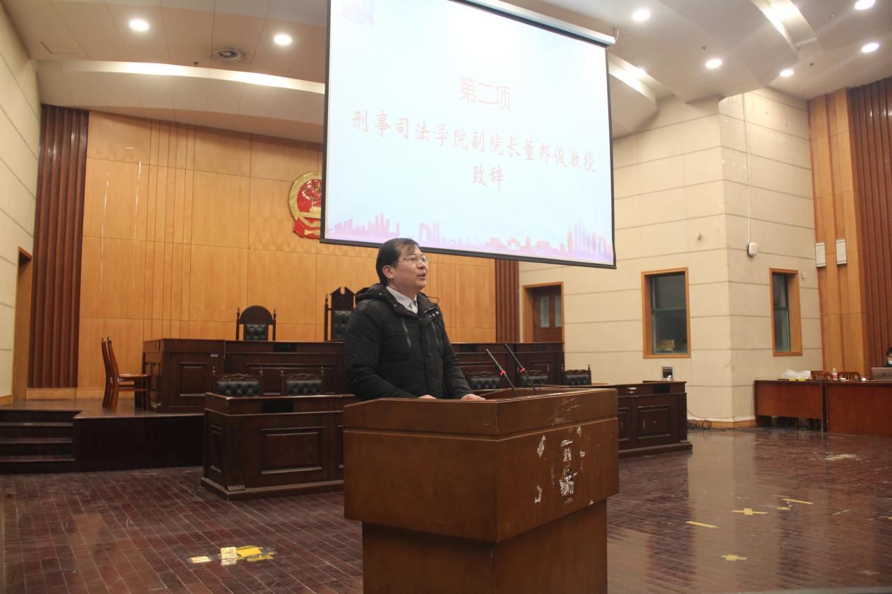 新闻网讯(学生记者 熊子青 凌司阳 高天乐)为全面贯彻落实党和国家在大学教育方面的方针政策和指示精神,引导和鼓励学生努力学习、奋发进取,造就德、智、体、美、劳全面发展的社会主义建设者和接班人,bat365官网于12月17日在文泰楼模拟法庭一举行了2020年年度总结表彰大会。bat365在线平台官网副院长董邦俊教授、院党委副书记万里雪、院学办主任陆薇老师、院分团委书记郭青川老师以及各年级辅导员莅临本次活动。