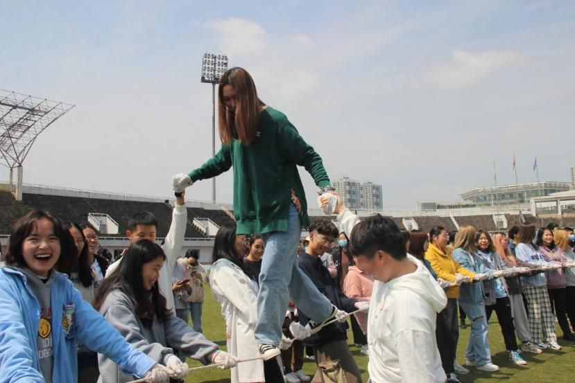 到了终极挑战的环节,为了防止同学们的手受伤,素拓中南的同学向大家发放了防护手套。在确定了绳子结实程度后,便是终极挑战“动力圈之独木桥”。教练员邀请了四个学院的代表走到绳圈的四个方位,让内圈的同学们拉起绳子。围绕着绳子走一圈,就算完成挑战。在工作人员的保护下,四位代表走到了绳子上。在一根绳子上行走,就如同走在独木桥上一样。拉着绳子的同学个个全神贯注,用尽全身力气,守护着绳子上行走的同学。外圈的同学们也为四位代表和拉绳的同学们加油鼓劲。最终,功夫不负有心人,四位代表和拉绳的同学们终于合力完成了一次紧张刺激的绳上行走。