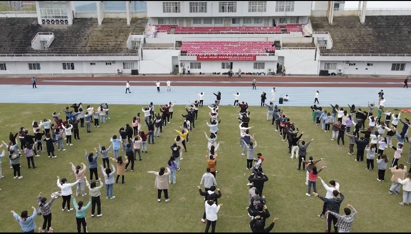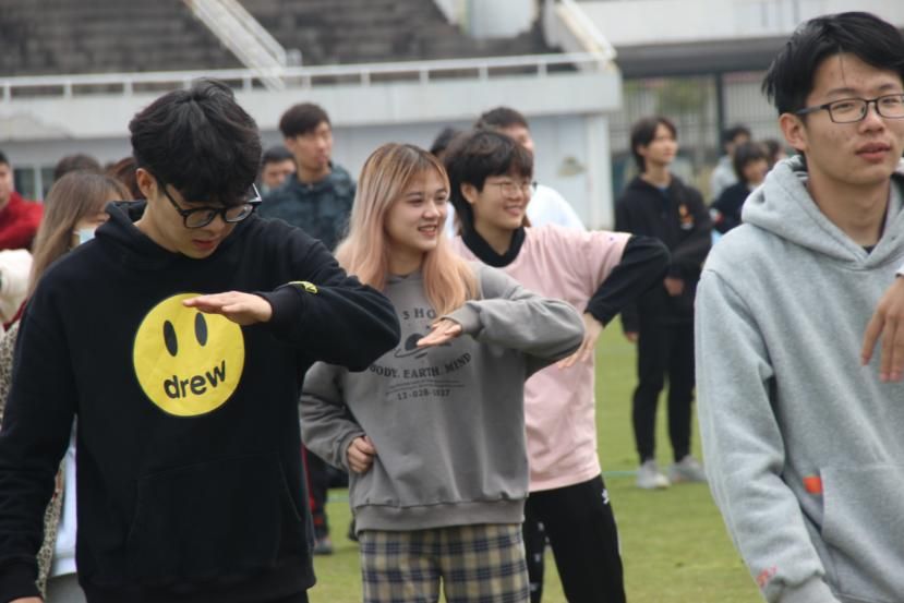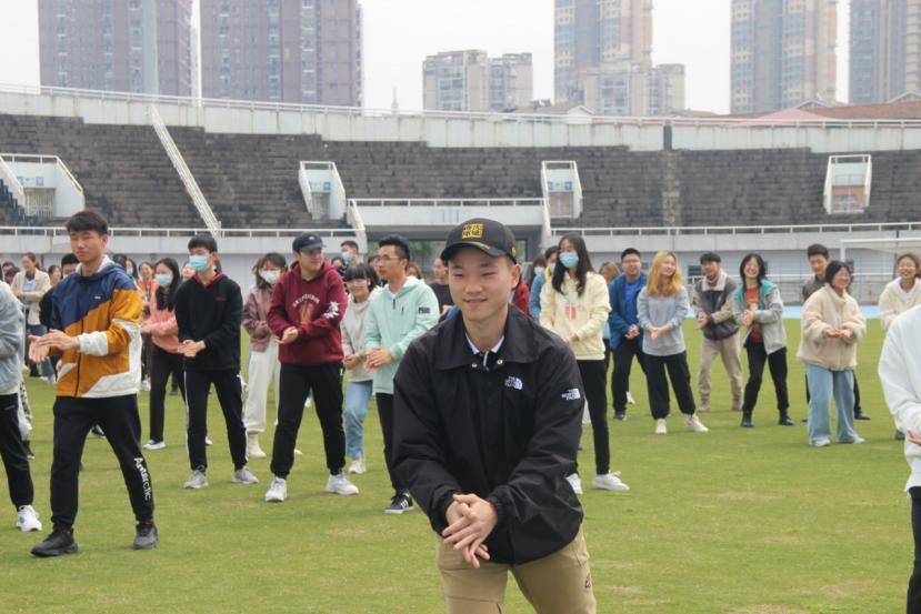 “最美人间四月天,花红柳绿春满园。”郭青川老师用这句诗来形容春日的美好。第一个环节是热身项目“凯歌”,由素拓中南的三名教练员向大家教授舞动韵律操,寓意着同学们在大学学习生活中一路高歌猛进。“凯歌”的舞动韵律操动作简洁有力,在教练员的悉心教导和认真的演示下,同学们通过两遍的学习便逐步熟悉掌握了各个动作。随后,同学们完成了全部5个动作的学习。随着音乐的节拍,同学们完整的表演了一遍“凯歌”舞动韵律操,一个个洋溢着笑脸,充满了青春蓬勃之气,顺利完成了第一个活动的挑战。