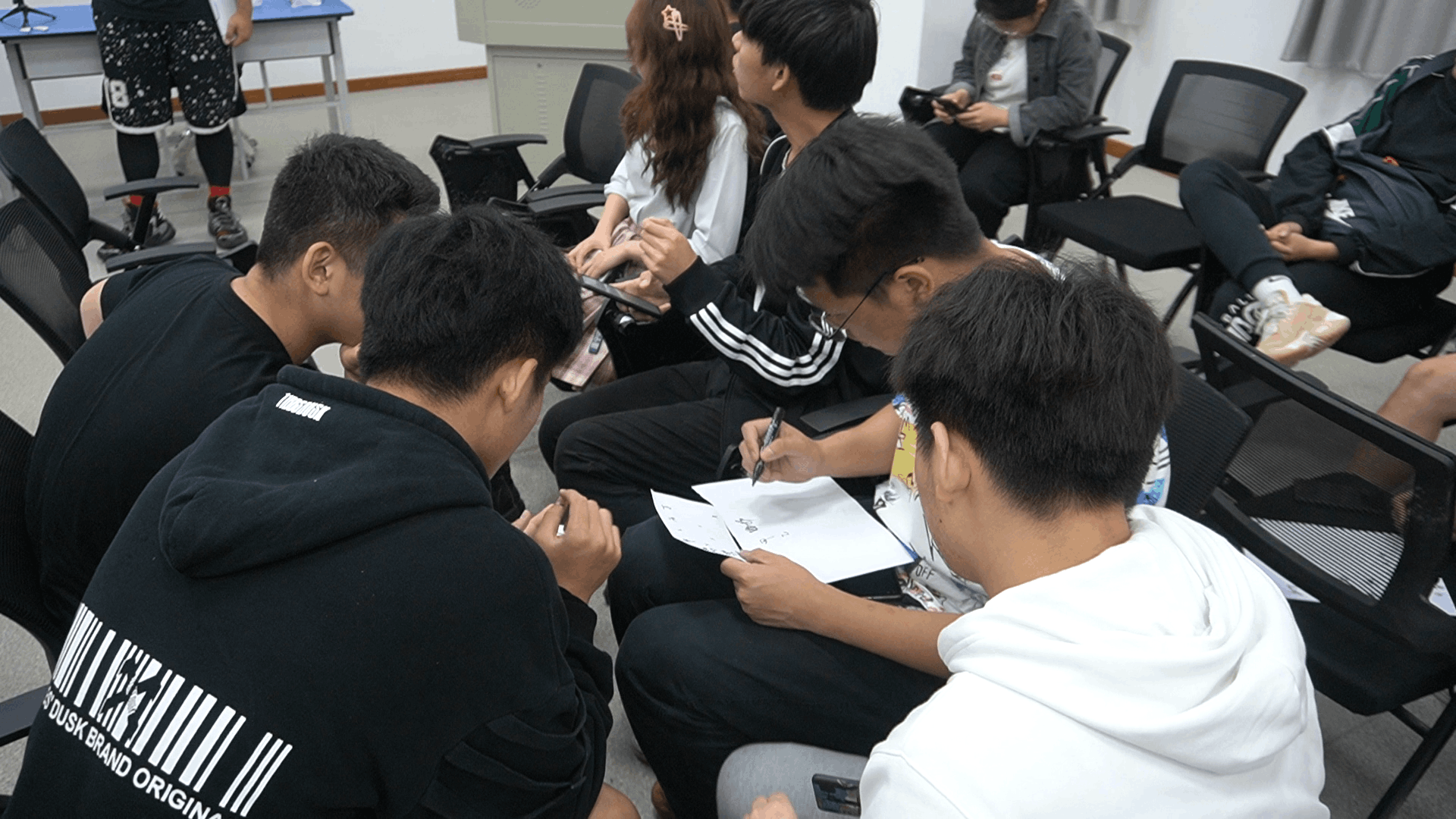 接着,视频引导“警员们”来到“樱花教堂”。在这个环节中,同学们进入“真人猜职业”的游戏挑战环节。讲台上的两名男生、两名女生扮演幼儿园老师、司机、护士和程序员。规则为同学们分别根据第一印象和给出的线索,猜出台上同学分别扮演的四种职业。在激烈的讨论和烧脑的比拼中,同学们运用精湛的逻辑推理分析能力,运用排除法推理出了四位“神秘人”各自扮演的职业。同学们在讨论中锻炼了人际沟通的能力,也通过答案的揭晓明白了职业刻板印象会影响判断,进而影响沟通的道理。