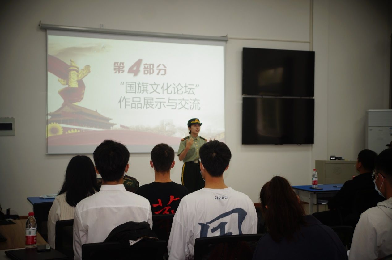 紧接着,华中农业大学国旗护卫队进行了自己队伍宣传方面的经验分享。队伍代表简要介绍了队伍的总章、训练日常以及团建活动的开展,秉持热爱、认真、坚持、传承的信念,带领队伍走向更高更远。最后,华中农业大学国旗护卫队希望各高校之间友谊长存、共同进步。