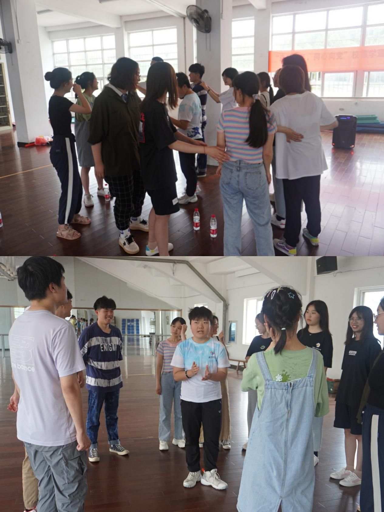 活动伊始,带领员余霈云以“萝卜蹲”“集中精神”“按摩操”三个小游戏进行开场热身,在“萝卜蹲”环节中,社员们必须准确地叫出其他社员们的名字,否则就会有小惩罚,在这个环节中,社员们对彼此更加熟悉。到了“集中精神”环节,社员们围成一圈,进行蹲起热身,在指定的圈数中集体喊出“集中精神”,社员们精神非常集中,很快就完成了挑战。最后的热身环节是按摩操,社员们围成一圈,双手搭在前一个人的肩上,在带领员有趣的口号下,给前一个人进行肩部按摩,现场气氛十分融洽,大家也逐渐进入活动状态。