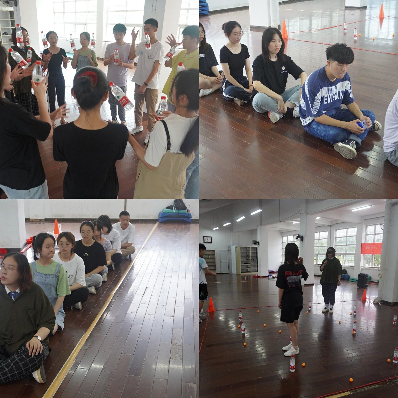 接下来是挑战环节“能量传递”,规则为全体社员围成一个圈,每个人把矿泉水瓶不断拋给右边的人,同时接住左边的瓶子,形成一个循环。在连续八次不间断,瓶子不掉落的情况下,视为挑战成功。校报学通社社员们在十分钟的练习中,不断磨合,团队商量讨论扔水瓶的方向与扔瓶子的方式意见达成了一致,最后也是顺利地完成了挑战。