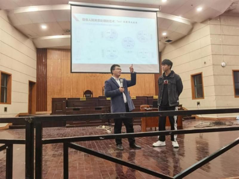 余金聪老师用小游戏、PPT、视频等多种方式活跃了现场氛围并展开宣讲。余老师以幽默风趣的语言列举了同学们在宿舍中亲身经历的种种问题、日常生活中的人际差异,告诉同学们宿舍矛盾的客观存在。随后,余老师就如何处理好宿舍关系、如何解决宿舍问题展开了论述,条理清晰地传授给同学们尊重他人、换位思考、团建沟通以及认知角度等经验。最后,余老师带领同学们深入探究矛盾冲突解决方式,形成十条经验法宝,并邀请同学们上台互动,亲身体验沟通艺术的奥妙。同学们随后纷纷表示“宿舍第一次团建”、“宿舍一致性沟通情景模拟”、“宿舍解忧杂铺货”等马上安排,提上日程。