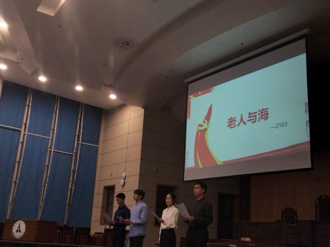 随后,便是团支部才艺展示环节。公安2101团支部同学合唱歌曲《歌唱祖国》,传达了支部成员浓浓的爱国热情,现场的观众也倍受感染。公安2102团支部同学集体朗诵《强国有我》,公安2103团支部同学集体朗诵《老人与海》,言语铿锵有力、振奋人心。公安2105团支部的同学们带来了精彩的历史剧表演,彰显了当代学生应有的家国情怀。星火燎原项目部同学表演的话剧《被病危的李某》, 生动趣味,给现场观众留下深刻的印象。