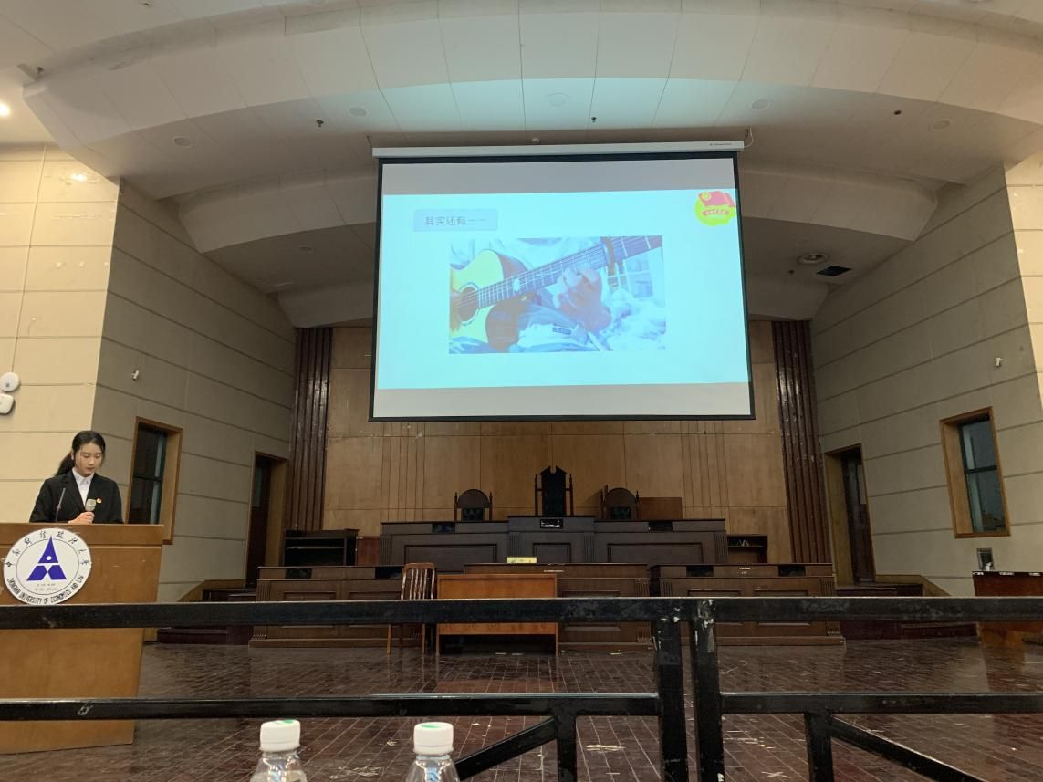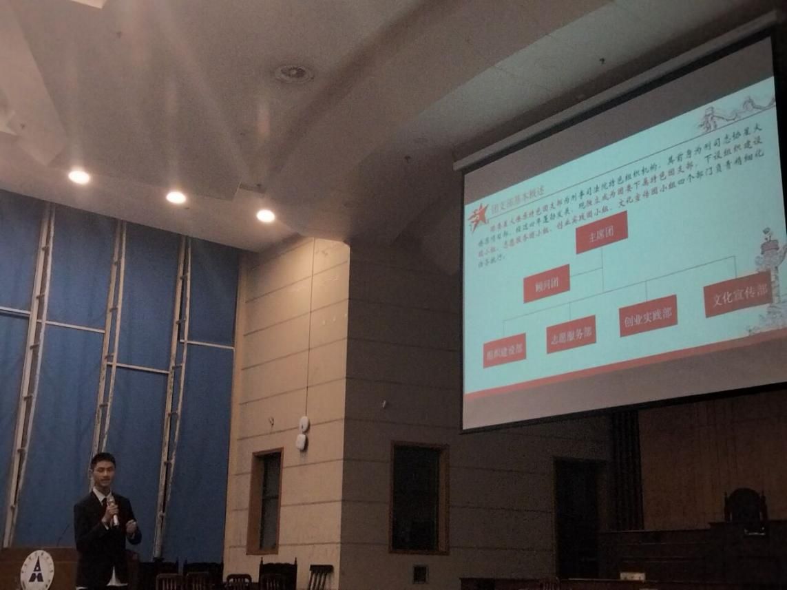 紧接着,公安2004班班长刘孟坦代表公安2004团支部进行展示,幽默风趣的语言与生动的讲解给现场的评委观众们留下了深刻的印象。