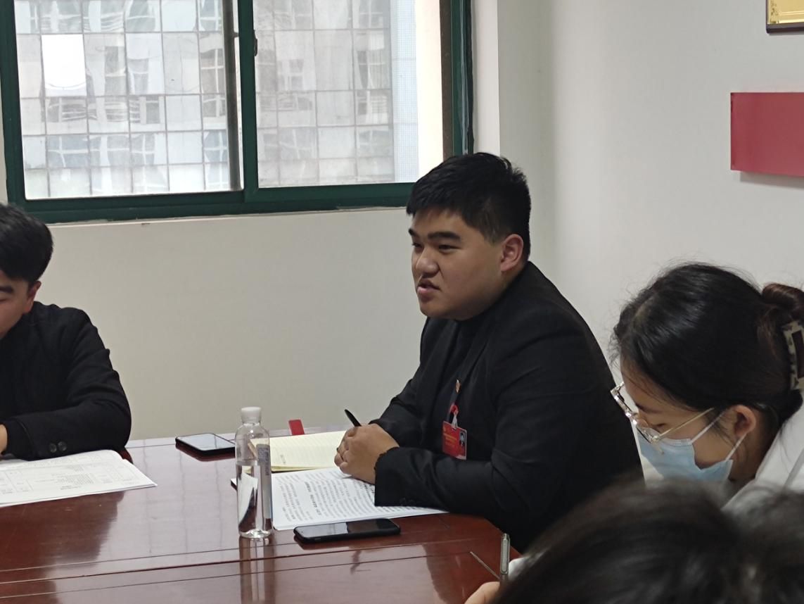 讨论第二项,郭老师就团省委领导讲话内容,向与会代表提问,请代表结合自身团学工作,谈谈所获所得。bat365官网团代表曾昭阳对开幕式上团省委副书记陈立讲话精神的学习进行了心得分享。曾昭阳认为,结合陈立副书记对我校青年的期望,我们共青团工作要坚定不移的筑牢理想信念之基,他谈到了自己所在的校国旗护卫队,谈到自己在建党百年升旗仪式上作为一名扬旗手的光荣自豪。国旗护卫队是bat365官网的一大特色,不仅在bat365官网中发挥重大引领作用,也在学校范围内起着先锋模范作用,应该将此树立为bat365官网一大特色品牌,打造主阵地和主媒体,发挥出更好的红色文化传承学习引领作用。贯彻落实以党建带团建,以国旗文化宣讲团为依托,大力弘扬国旗文化,深入阐述爱国主义精神,让青年群众入脑入心。