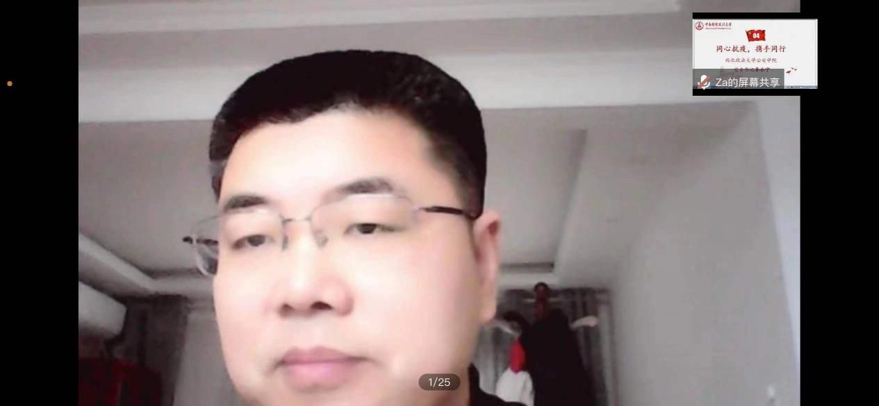 西北政法大学公安学院侦查学教研室党支部书记胡德葳老师表示,此次活动进一步加深了两院友谊,两座英雄城市的抗疫壮举必将激励人们迎难而上。他以疫情期间了解到的一些涉及法律制度问题为内容发言,主题为疫情时期诈骗案件的特点与对策。他从案件的特点、打击难点和打击对策三个方面进行了详细分析。在特点方面,诈骗主体和被害客体范围扩大、诈骗形式花样翻新,且具有主体难、管辖难、取证难、打击时效难等难点,最后针对这些新特点提出了可行性的打击对策。