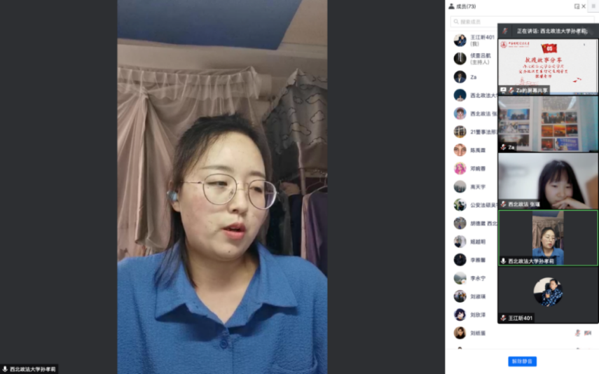 活动第二部分是以“疫情防控常态化下的法律问题和社会治理问题”为主题的学术交流分享会,两院的硕士生、博士生积极参与讨论与交流。