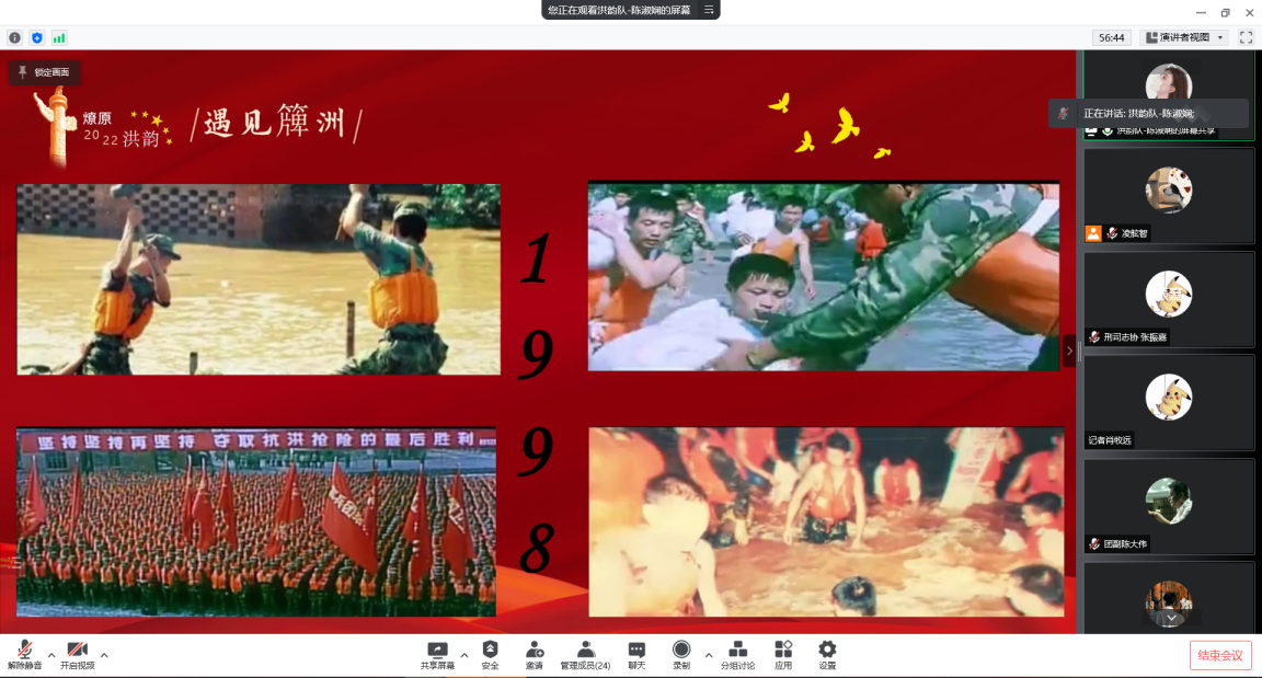 首先出场的是红书伏案扬弃坚,赤子倦首初心先的红色五角星小队。他们以红色历史为线索,集中整合江城武汉的各式红色旅游资源,通过实地考察、了解背景,学习精神为社会主义新征程奉献力量。既有扎根岳阳党史与红色文化的发际线总是在跟我作队和刑司乡村振兴小队,更有传承优秀老党员先志的候鸟守护小分队,他们扎根风土人情,收获红色文化知识,传承弘扬革命先烈精神。而洪韵队,则带来人民子弟钢铁意志,让我们再度重温那万众一心,众志成城的抗洪精神。