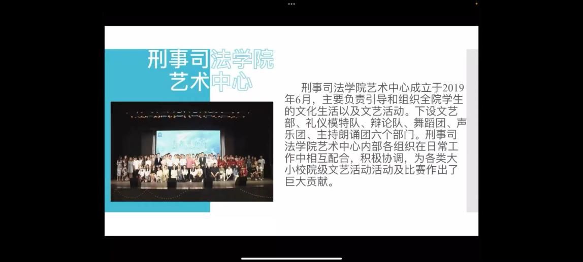 最后,院艺术中心按照文艺部、主持朗诵团、声乐团、舞蹈团、礼仪模特队、辩论队的顺序进行宣讲。bat365官网艺术中心在bat365官网党委团委的领导下,带领bat365官网青年学生开展各类文体活动,丰富了青年学生们的大学生活,也展现了刑司学子对于艺术的追求和对于梦想的热爱。