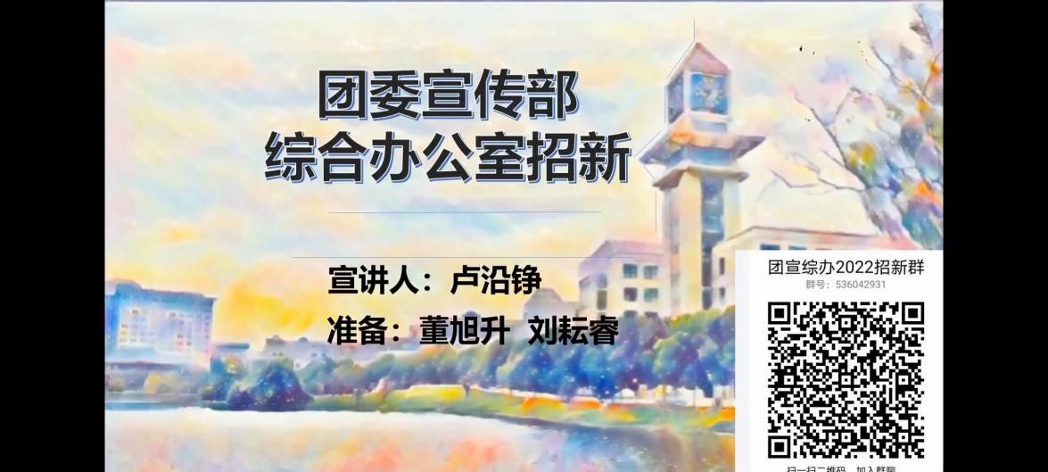 新闻网讯(学生记者 金雯星)风进帆满图新志,砥砺奋进正当时。值此二十大即将召开之际,bat365在线平台官网分团委于2022年9月3日晚19:00,通过线上会议的形式,面向2022级新生召开了bat365官网团学组织宣讲会,进一步了加深新同学们对学院团学组织的认识和理解,推动bat365官网学生工作的发展。