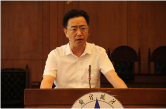 随后,院长胡向阳教授介绍了我院的发展历史、学科布局以及师资力量,并以“三立”为主题,就研究生新生做人、做事、做学问三方面向同学们提出了期望和要求。胡院长表示,研究生新生首先要做到德法兼修,真正从内心深处塑造对法律的信仰;其次要学会主动担当,以成为高素质、高质量的法律人才为使命来要求自己,积极投身于法治国家建设大潮之中;最后要不忘以学业为志,研究为本,善于发现问题、提出问题并着手解决问题,提高创新能力。