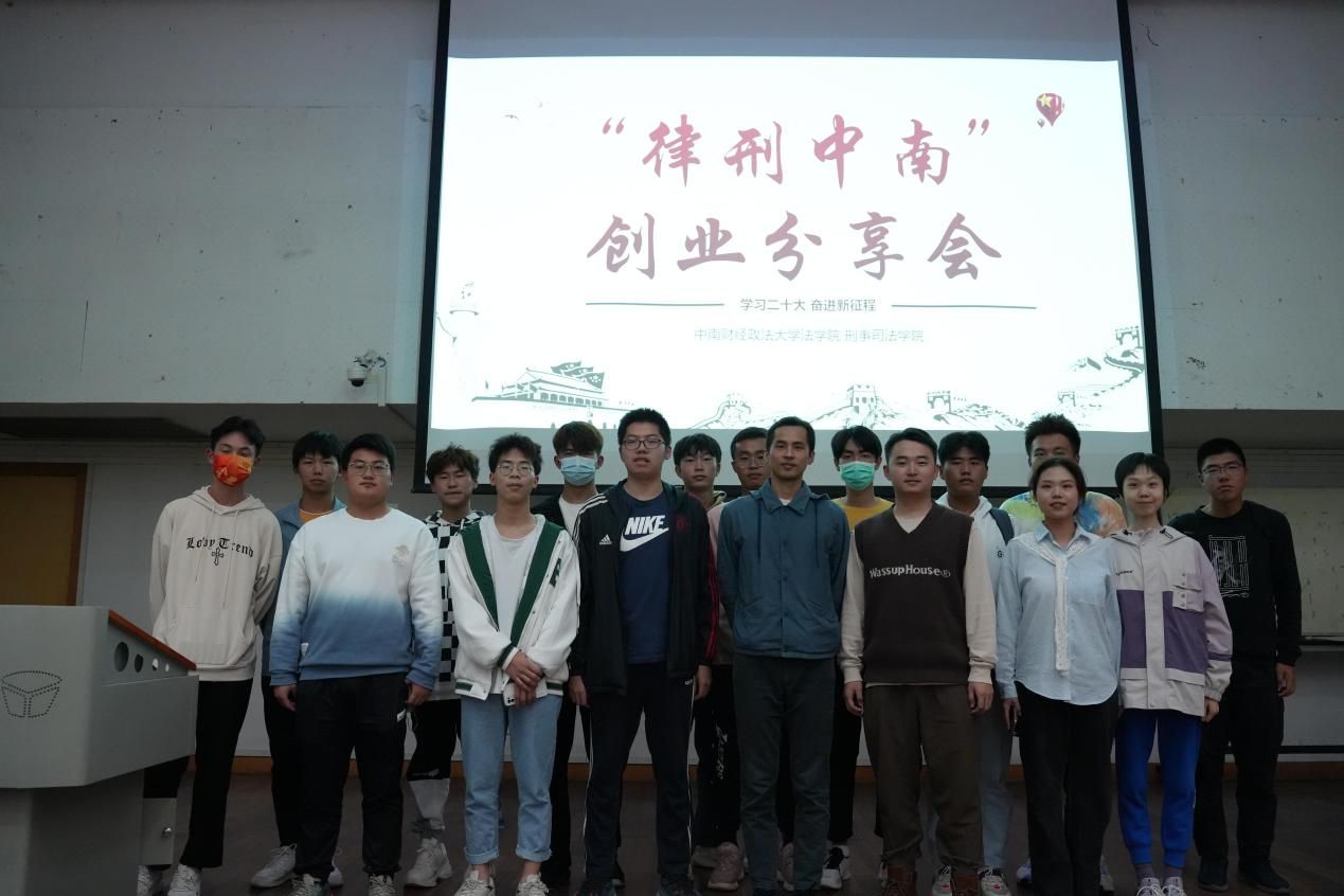 新闻网讯(学生记者 宋雨洁 王文豪 朱彬彬)创青春,正当时!为庆祝党的二十大胜利召开,不断增强我校学生的创新创业意识,培养创新创业能力。10月21日晚18时30分,面向全校学生的举办的“律刑中南”创业实践分享会在文澜楼111教室举行。该讲座由bat365官网创业实践部与法学院公关实践部联合主办,bat365官网22级硕士研究生李丞铭,20级本科生李宇轩和法学院21级本科生卢希武担任主讲,bat365官网侦查学10级毕业生陈镜荣作为特邀嘉宾出席讲座。