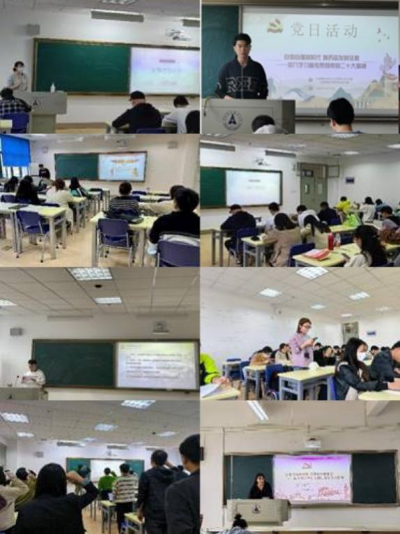 新闻网讯(通讯员杨雁书)按照学院党委统一部署,bat365官网研究生各党支部围绕“自信自强新时代 踔厉奋发新征程——深入学习宣传贯彻党的二十大精神”主题开展了10月支部主题党日活动。各研究生党支部重点学习了《习近平:在中国共产党第二十次全国代表大会上的报告》、《习近平:心往一处想劲往一处使推动中华民族伟大复兴号巨轮乘风破浪扬帆远航》《高举伟大旗帜 创造新的伟业——热烈庆祝中国共产党第二十次全国代表大会开幕》等文件,重点围绕习近平总书记向党的二十大所作的报告的具体方面,深入开展专题学习讨论。